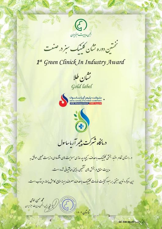 به گزارش فراز انرژی به نقل از روابط عمومی شرکت پلیمر آریاساسول، همسو با تأکید مدیریت ارشد سازمان بر لزوم توجه به توسعه پایدار در تمامی ابعاد فرایندهای سازمانی، پس از بررسی حضوری ممیزان و اجرای بهبودهای متأثر از فرایند بازدید میدانی در حوزه کیفیت سبز و تعمیم به نظام کنترل مدارک و مستندات در امتداد کیفیت، ۲ گواهینامه کیفیت خدمات بالینی و غیر بالینی Green Accreditation Systems و گواهینامه کلینیک سبز Green clinic به شرکت اعطا شد.