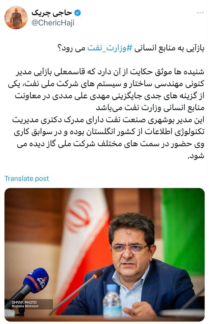 شنیده‌ها موثق حکایت از آن دارد که قاسمعلی بازآیی مدیر کنونی مهندسی ساختار و سیستم‌های شرکت ملی نفت، یکی از گزینه‌های جدی جایگزینی مهدی علی مددی در معاونت منابع انسانی وزارت نفت می‌باشد