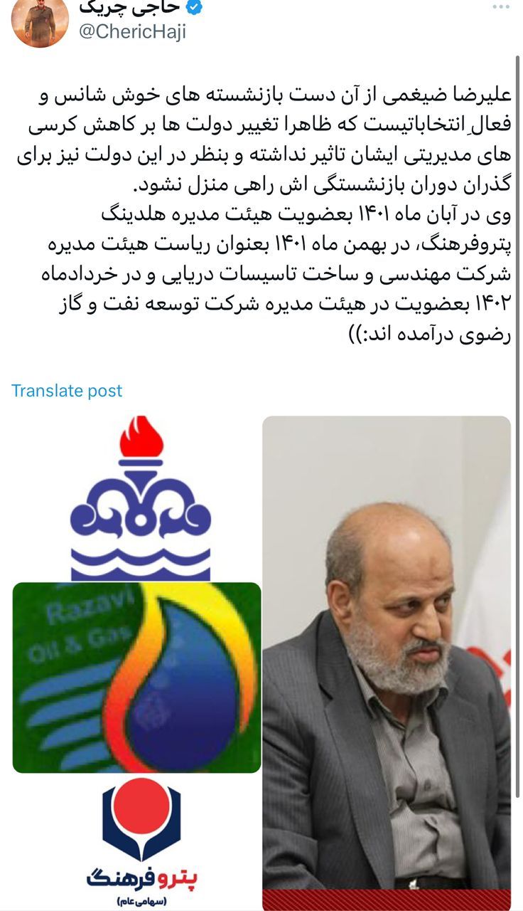 علیرضا ضیغمی از آن دست بازنشستههای خوش شانس و فعالِ انتخاباتیست