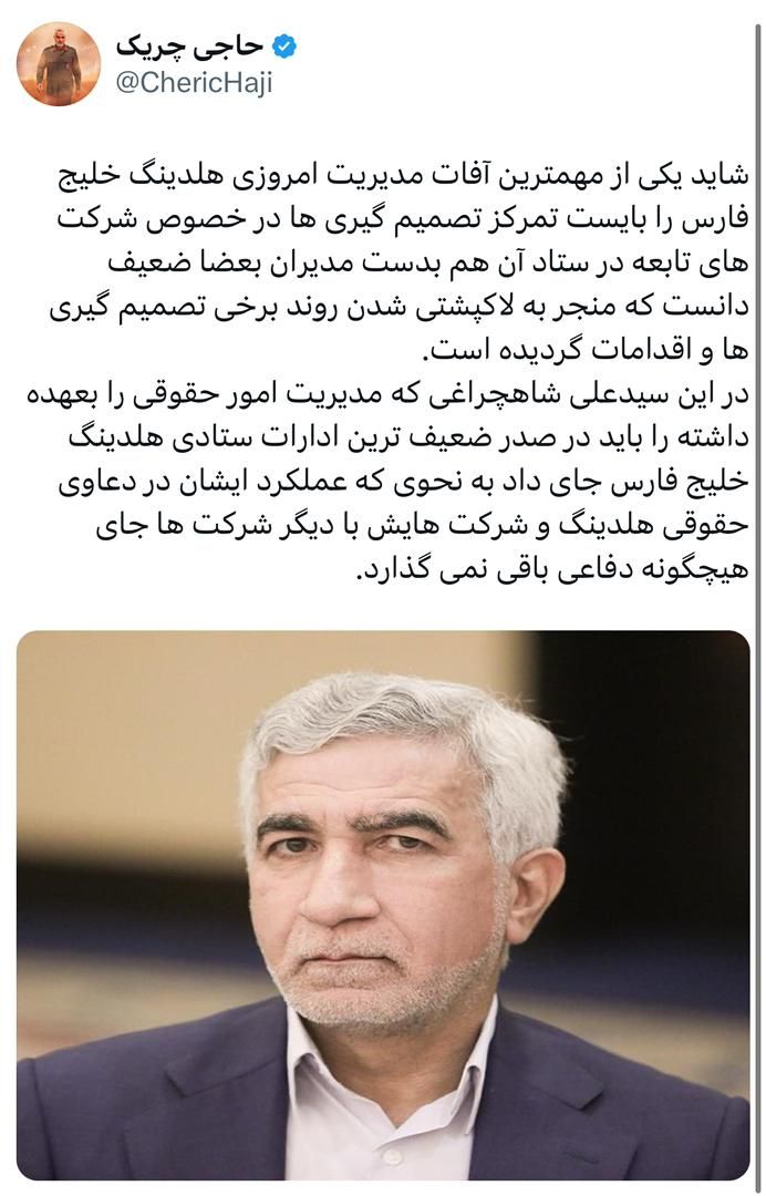 برچسب ها :حاجی چریک ، سیدعلی شاهچراغی ، هلدینگ خلیج فارس