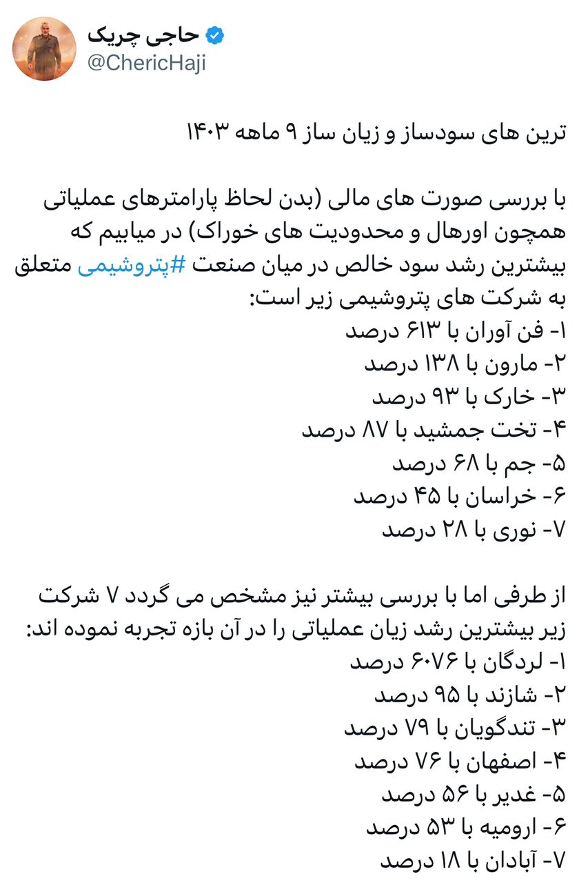 با بررسی صورتهای مالی (بدن لحاظ پارامترهای عملیاتی همچون اورهال و محدودیتهای خوراک) در میابیم که بیشترین رشد سود خالص در میان صنعت پتروشیمی متعلق به شرکتهای پتروشیمی زیر است: