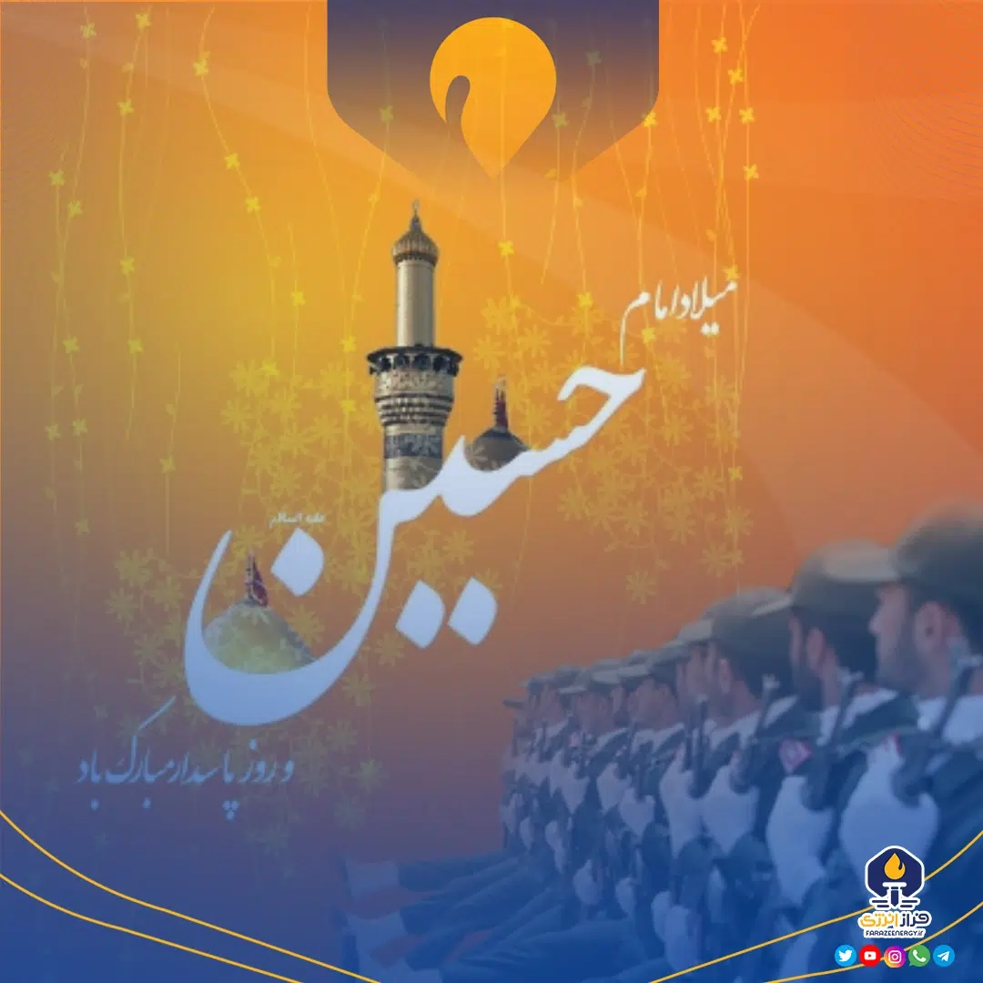 - پوستر تبریک ولادت امام حسین و روز پاسدار – روابط عمومی هلدینگ انرژی سپهر