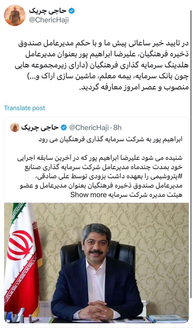 برچسب ها :صندوق ذخیره فرهنگیان ، علیرضا ابراهیمپور ، هلدینگ پتروفرهنگ