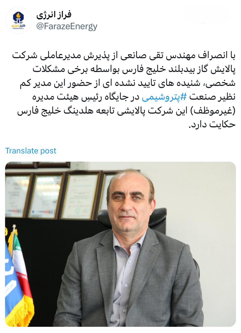 شنیدههای تایید نشدهای از حضور مهندس تقی صانعی در جایگاه رئیسِ هیئت مدیره شرکت پالایش گاز بیدبلند خلیج فارس