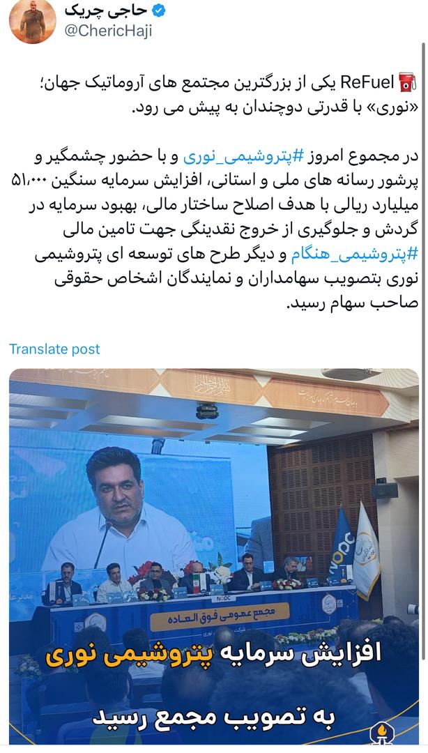 برچسب ها :پتروشیمی نوری ، حاجی چریک