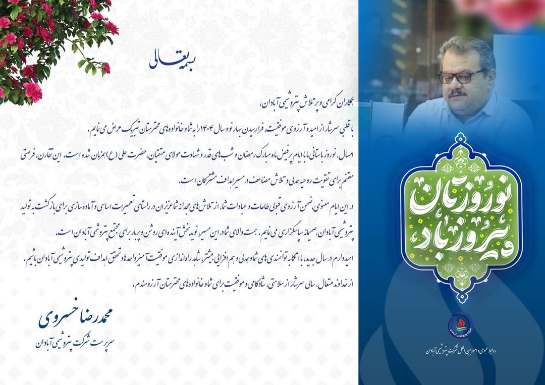 پیام نوروزی مهندس محمدرضا خسروی سرپرست محترم پتروشیمی آبادان