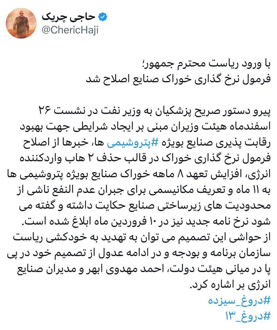 برای مشاهدهی توییتهای حاجی چریک اینجا کلیک کنید.