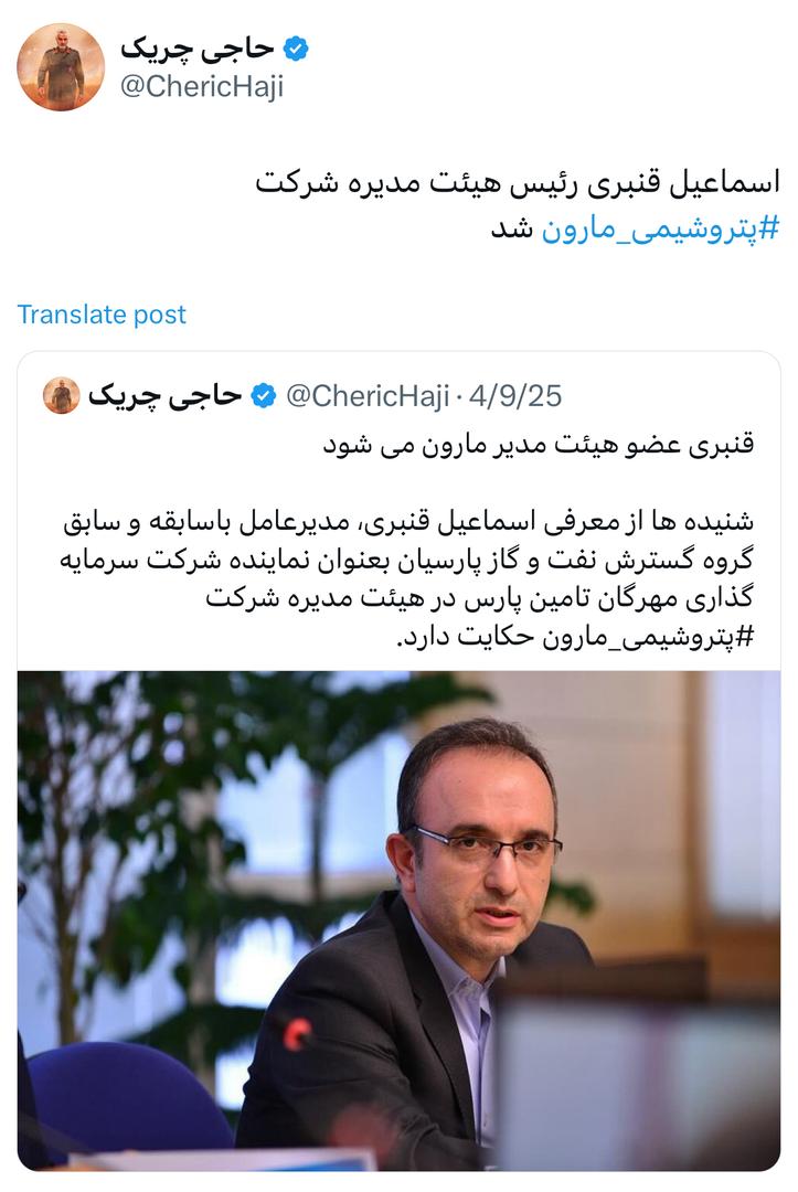 اسماعیل قنبری رئیس هیئت مدیره شرکت پتروشیمی مارون شد