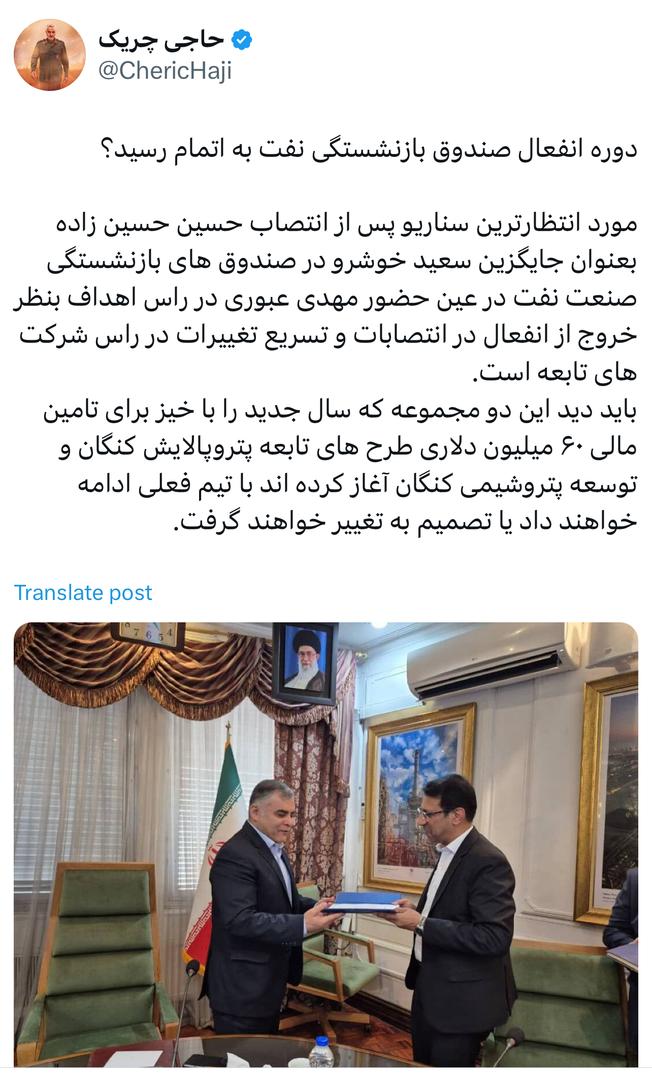 مورد انتظارترین سناریو پس از انتصاب حسین حسین زاده بعنوان جایگزین سعید خوشرو در صندوق های بازنشستگی صنعت نفت در عین حضور مهدی عبوری در راس اهداف بنظر خروج از انفعال در انتصابات و تسریع تغییرات در راس شرکت های تابعه است.