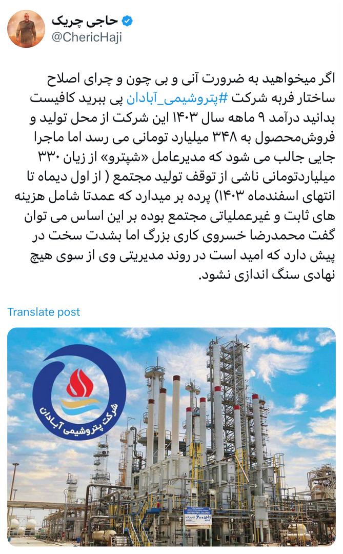 برچسب ها :پتروشیمی آبادان ، حاجی چریک ، محمدرضا خسروی