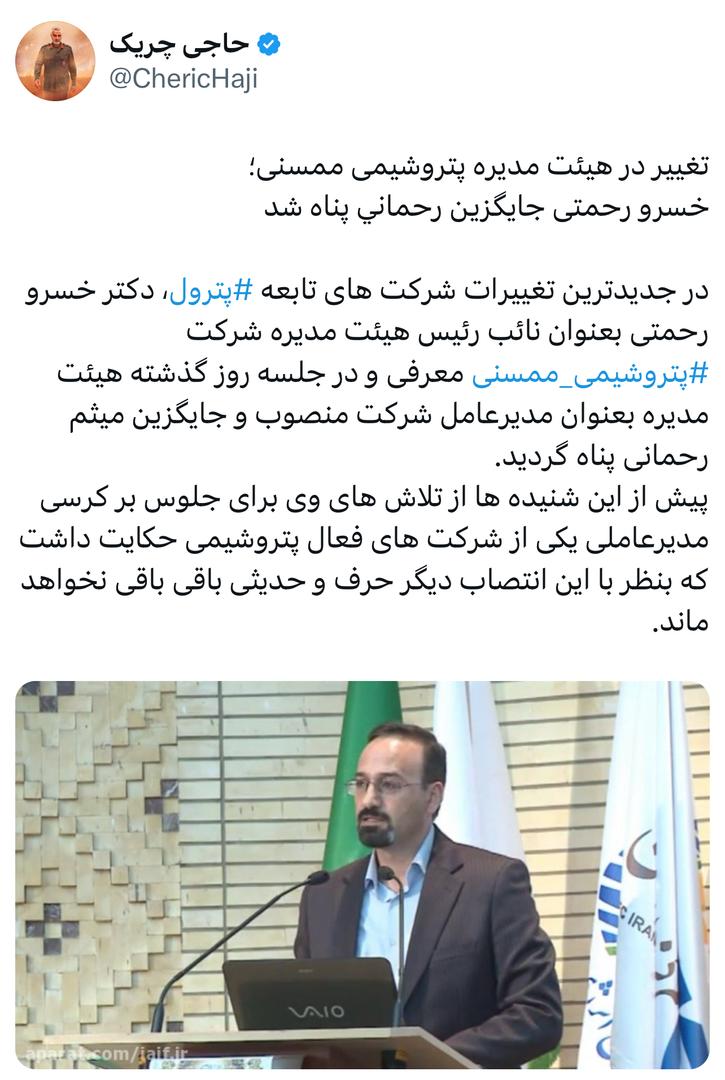 تغییر در هیئت مدیره پتروشیمی ممسنی؛ خسرو رحمتی جایگزین رحمانی پناه شد