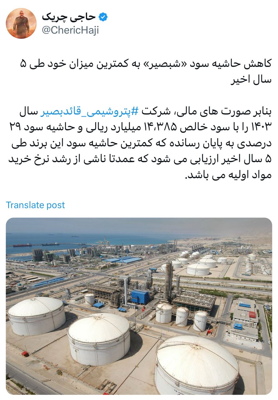 بنابر صورت‌های مالی، شرکت پتروشیمی قائدبصیر‬⁩ سال ۱۴۰۳ را با سود خالص ۱۴.۳۸۵ میلیارد ریالی و حاشیه سود ۲۹ درصدی به پایان رسانده که کمترین حاشیه سود این برند طی ۵ سال اخیر ارزیابی می‌شود که عمدتا ناشی از رشد نرخ خرید مواد اولیه می‌باشد.