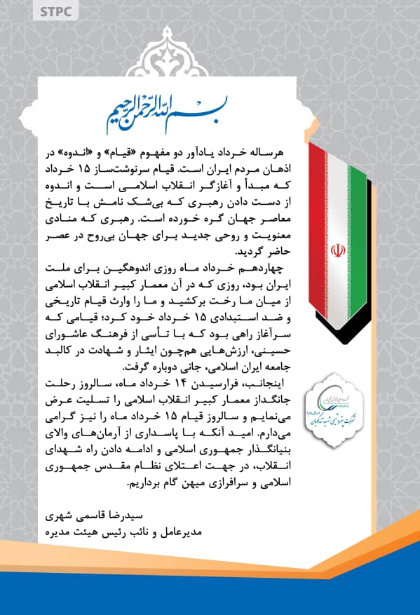 پیام مدیرعامل پتروشیمی شهید تندگویان به مناسبت سالگرد رحلت امام خمینی و قیام ۱۵ خرداد