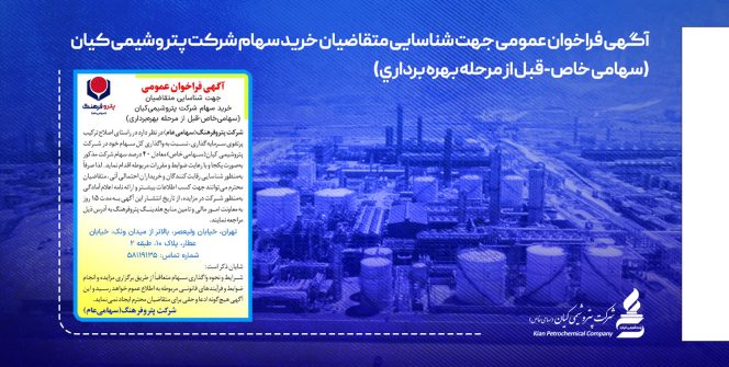 آگهی فراخوان عمومی جهت شناسایی متقاضیان خرید سهام شرکت پتروشیمی کیان