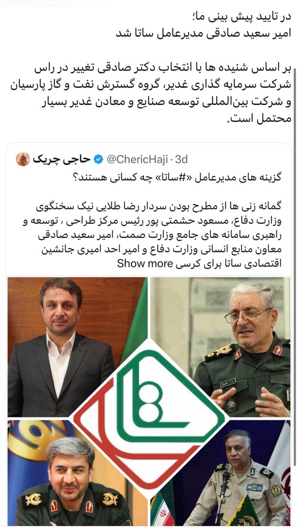 برچسب ها :امیر سعید صادقی ، حاجی چریک ، ساتا