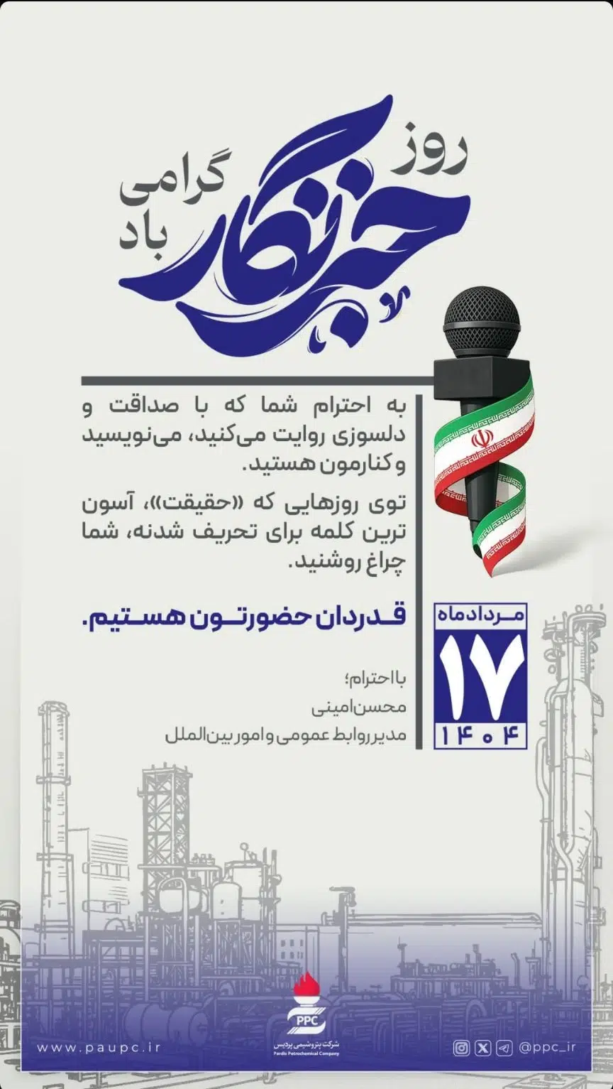 پیام تبریک محسن امینی مدیر روابط عمومی و اموربین الملل پتروشیمی پردیس به مناسبت روز خبرنگار
