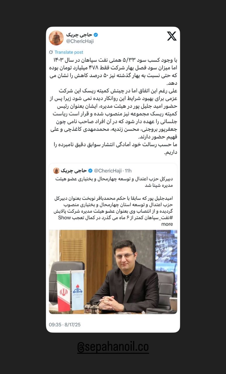 برچسب ها :امید جلیلپور ، حاجی چریک ، شرکت نفت سپاهان ، نفت سپاهان