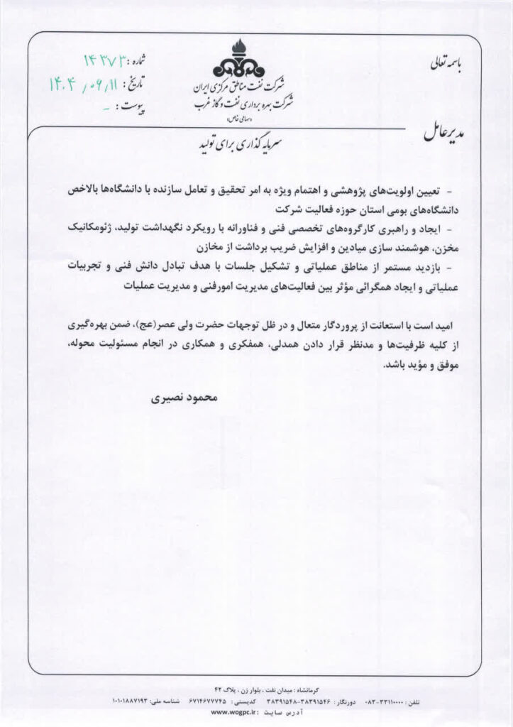برچسب ها :احمد ساعی ، شرکت بهره برداری نفت و گاز غرب