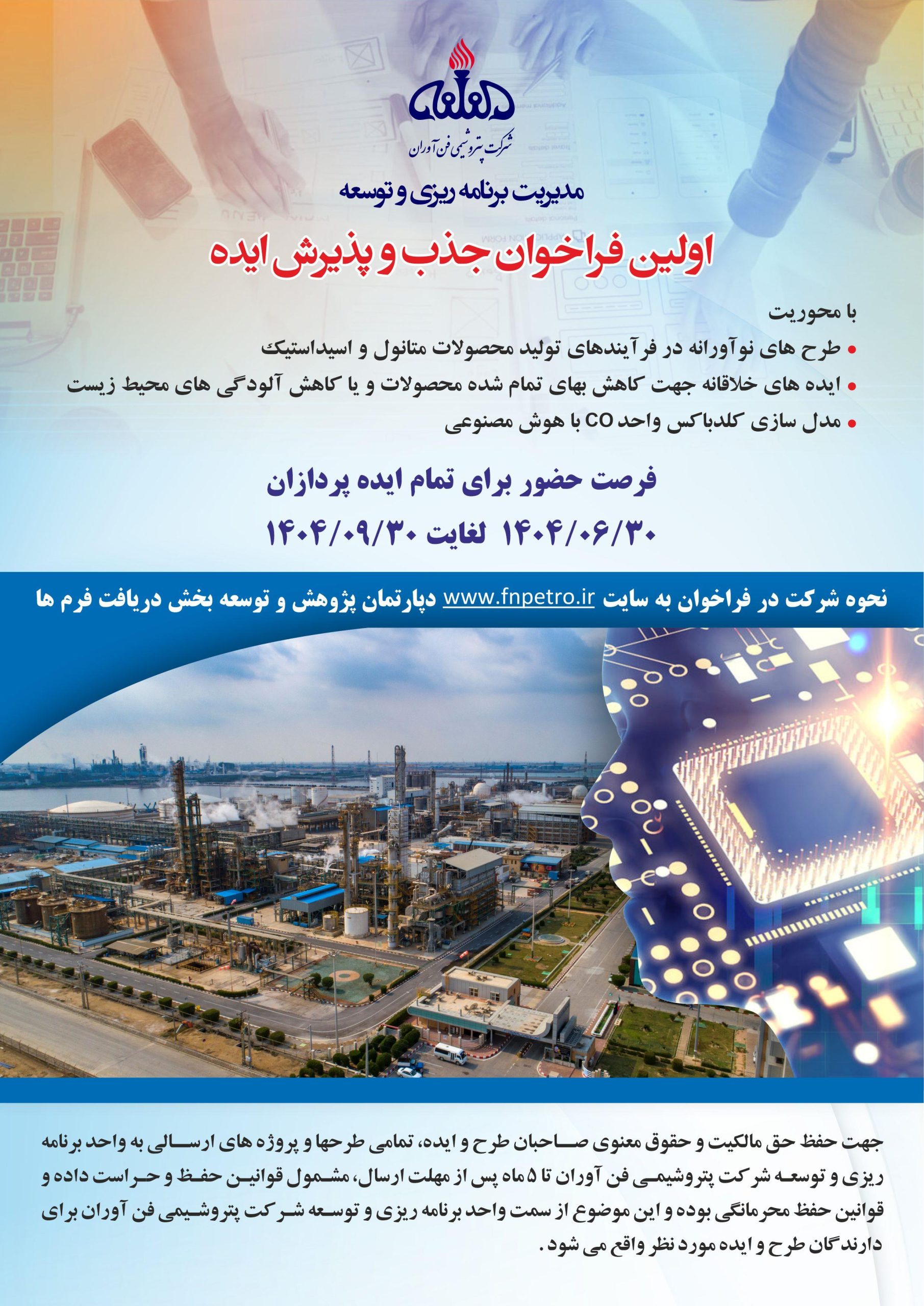 اولین فراخوان جذب و پذیرش ایده در پتروشیمی فن آوران
