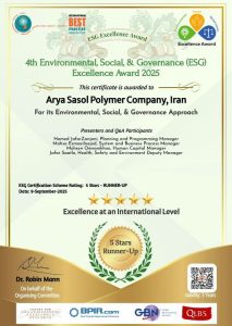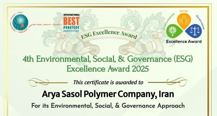 به گزارش فرازانرژی به نقل از روابط عمومی شرکت پلیمر آریاساسول، گواهینامههای چهارمین دوره جایزه تعالی پایداری (ESG) مبتنی بر حوزههای محیط زیست، اجتماع و حاکمیت سال ۲۰۲۵ تحت نظارت مسابقه برترین تجارب بینالمللی (IBPC) (IBPC 4th Environment, Social, Governance Excellence Award ۲۰۲۵) برای آریاساسول صادر شد.