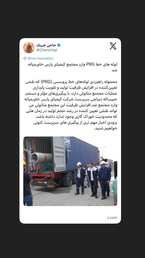 برچسب ها :حاجی چریک ، کیمیای پارس خاورمیانه