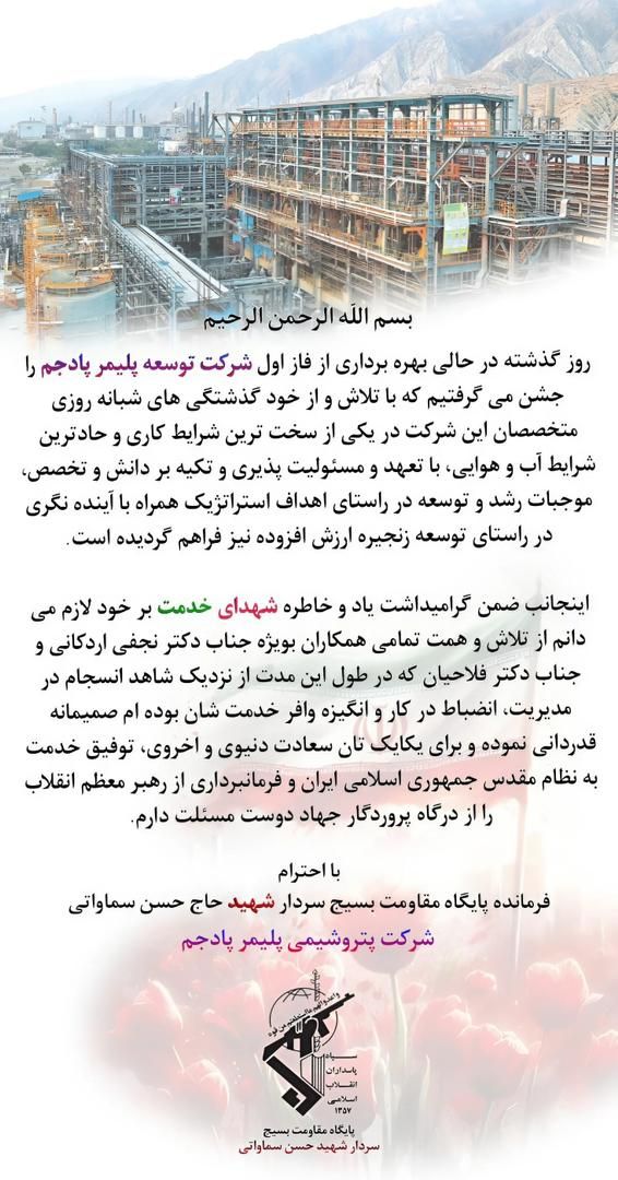 فرمانده پایگاه مقاومت بسیج سردار شهید حاج حسن سماواتی شرکت پتروشیمی جم