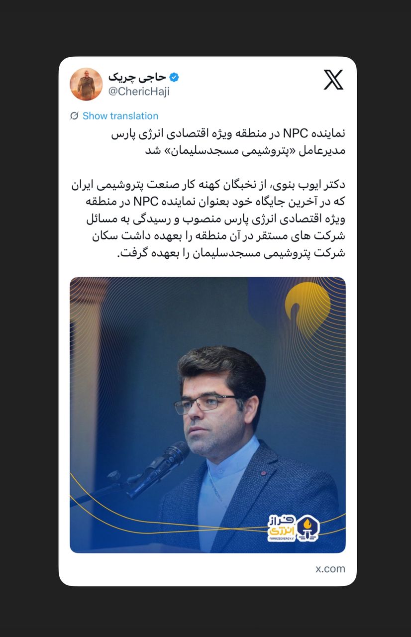 کعب عمیر، عضو کنونی کمیسیون انرژی در حساب ایکس خود نوشت؛